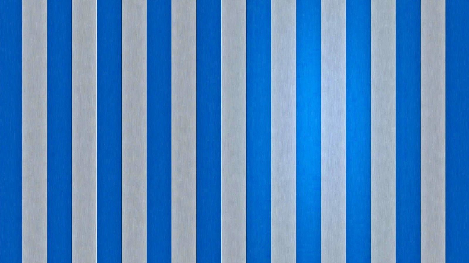 Description: A blue and white striped wallpaper with vertical lines in the center of the wall and a white stripe in the middle.