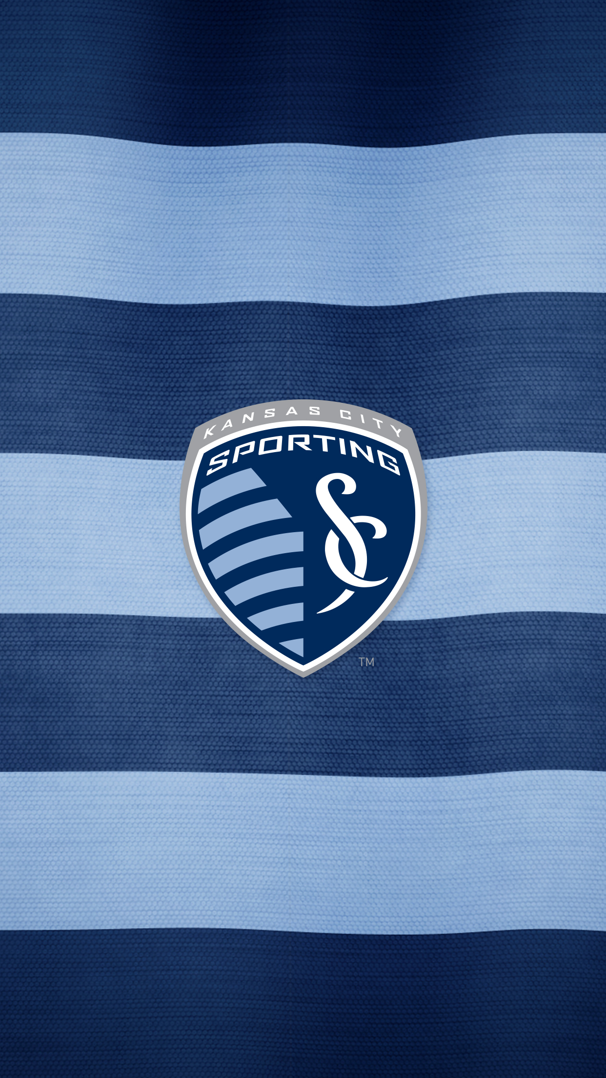 Description: A blue and white striped wallpaper with a sporting logo on it's side and a white and blue stripe.