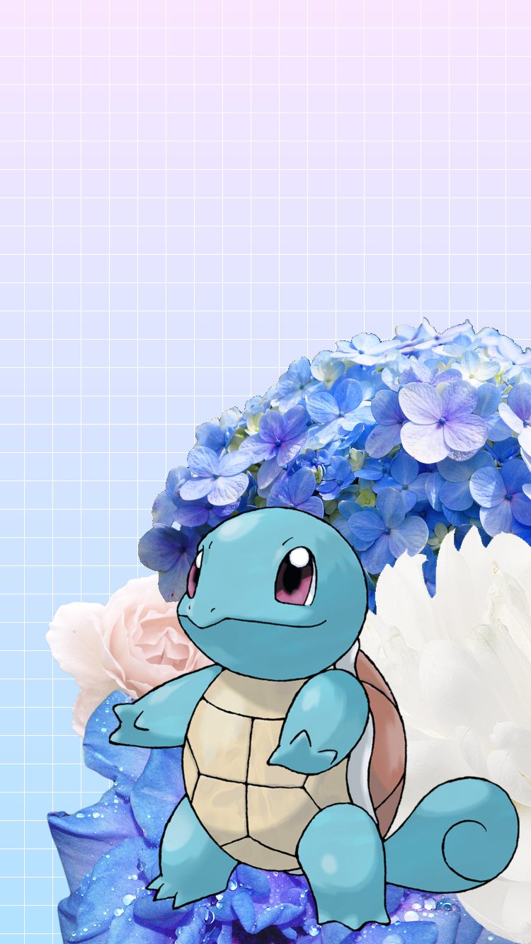 Description: A blue and white turtle sitting on a blue flowered background with a pink and white flowered background.