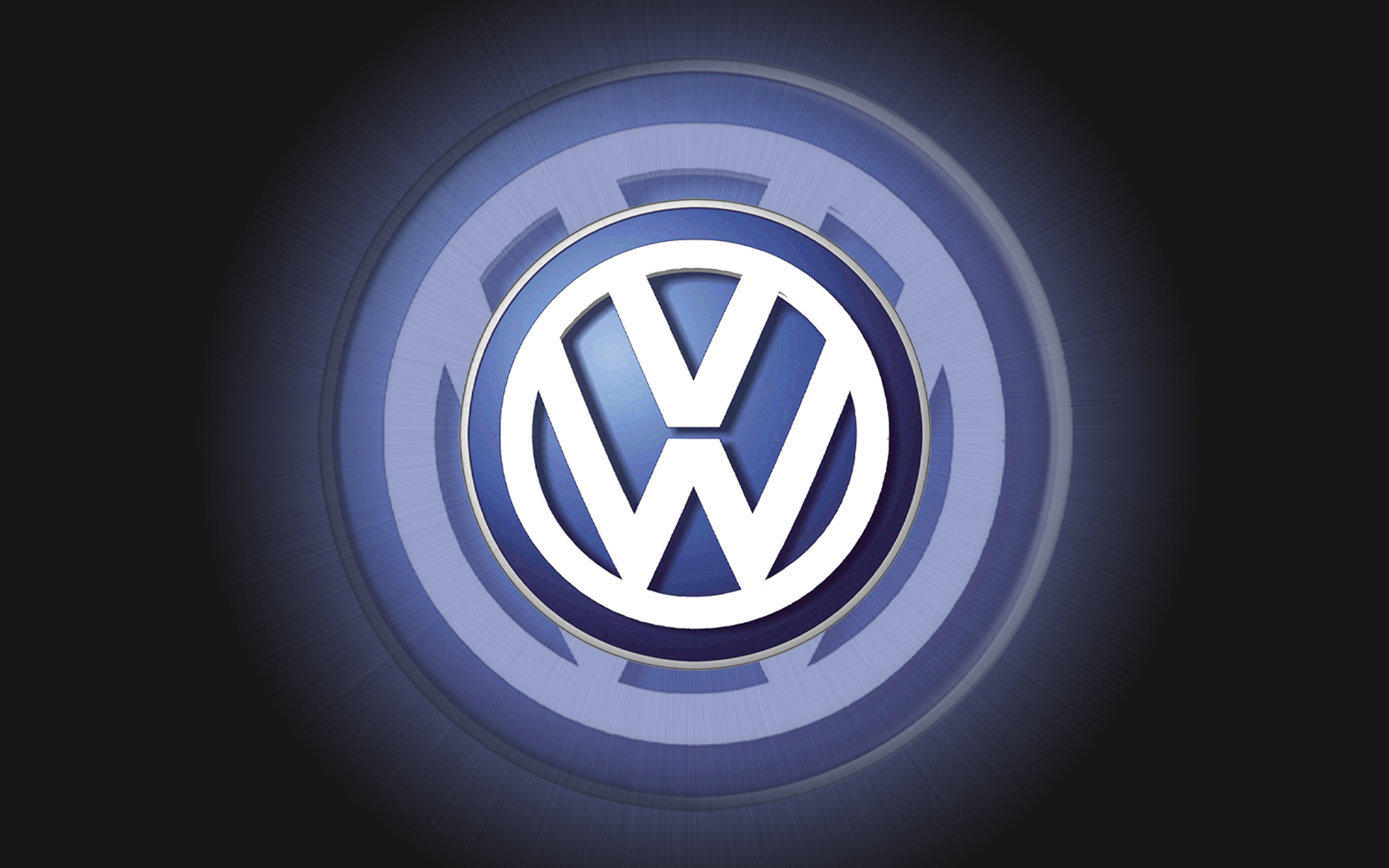 Description: A blue and white volkswagen emblem on a black background with a blue circle around it and a black background.