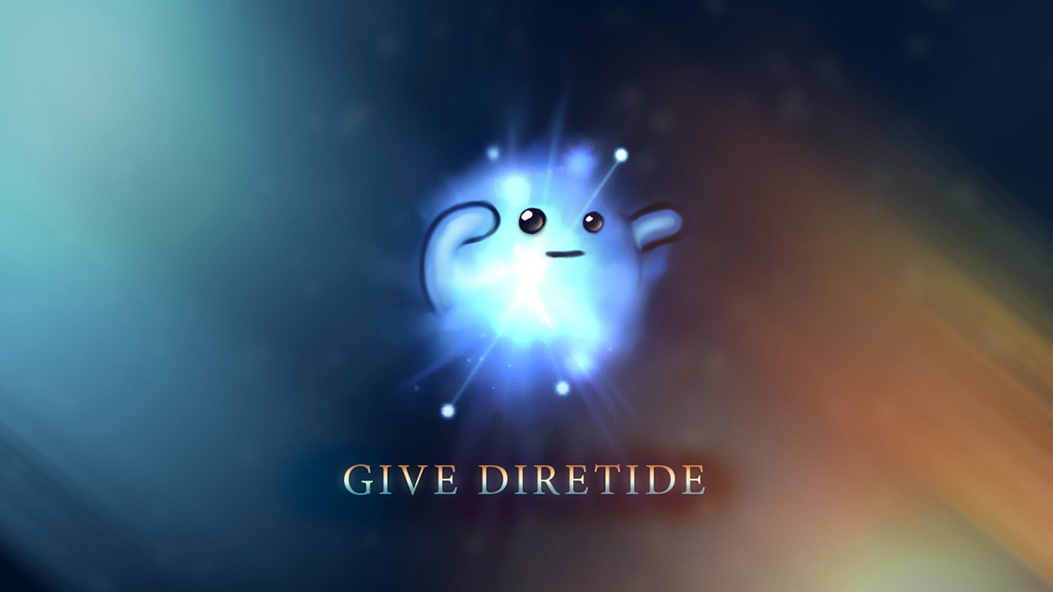 Description: A blue and yellow background with a glowing object in the middle of it and the words give dretide written below it.