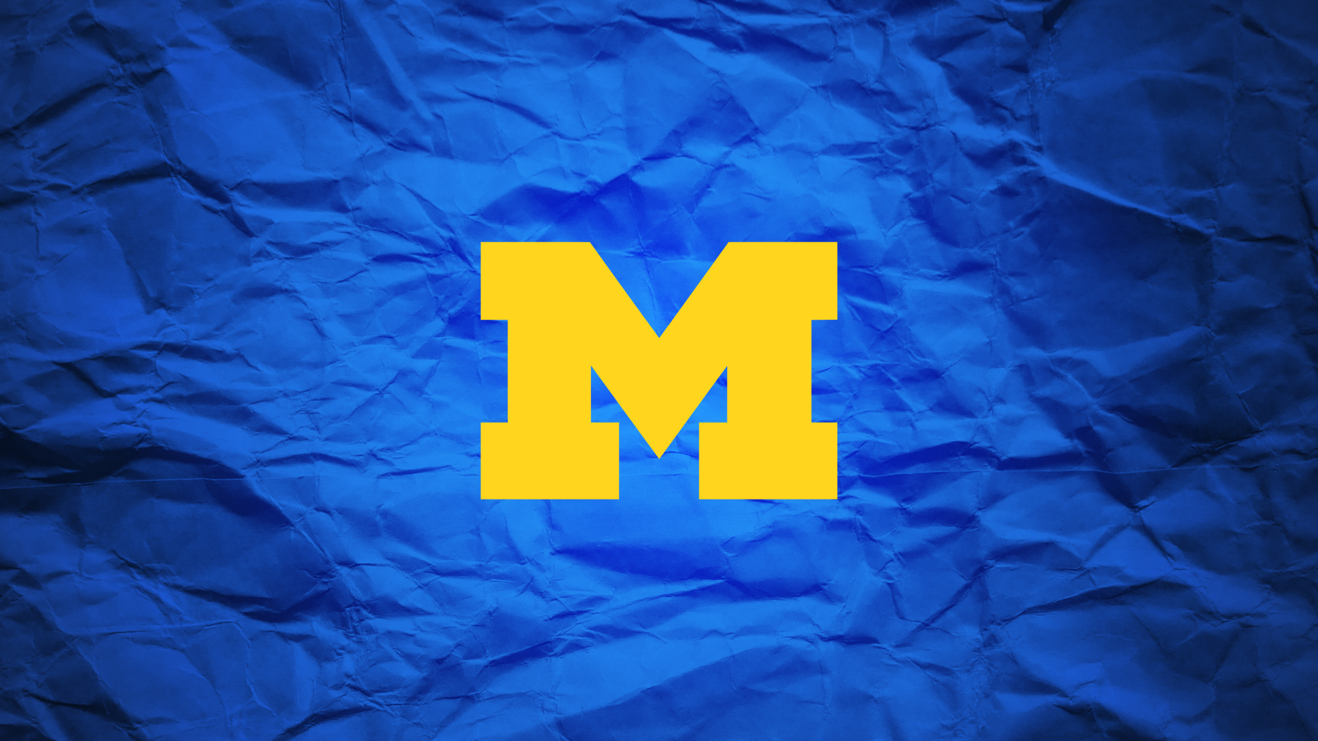 Description: A blue and yellow background with a yellow m on it's side and a blue background with a yellow m on it's side.