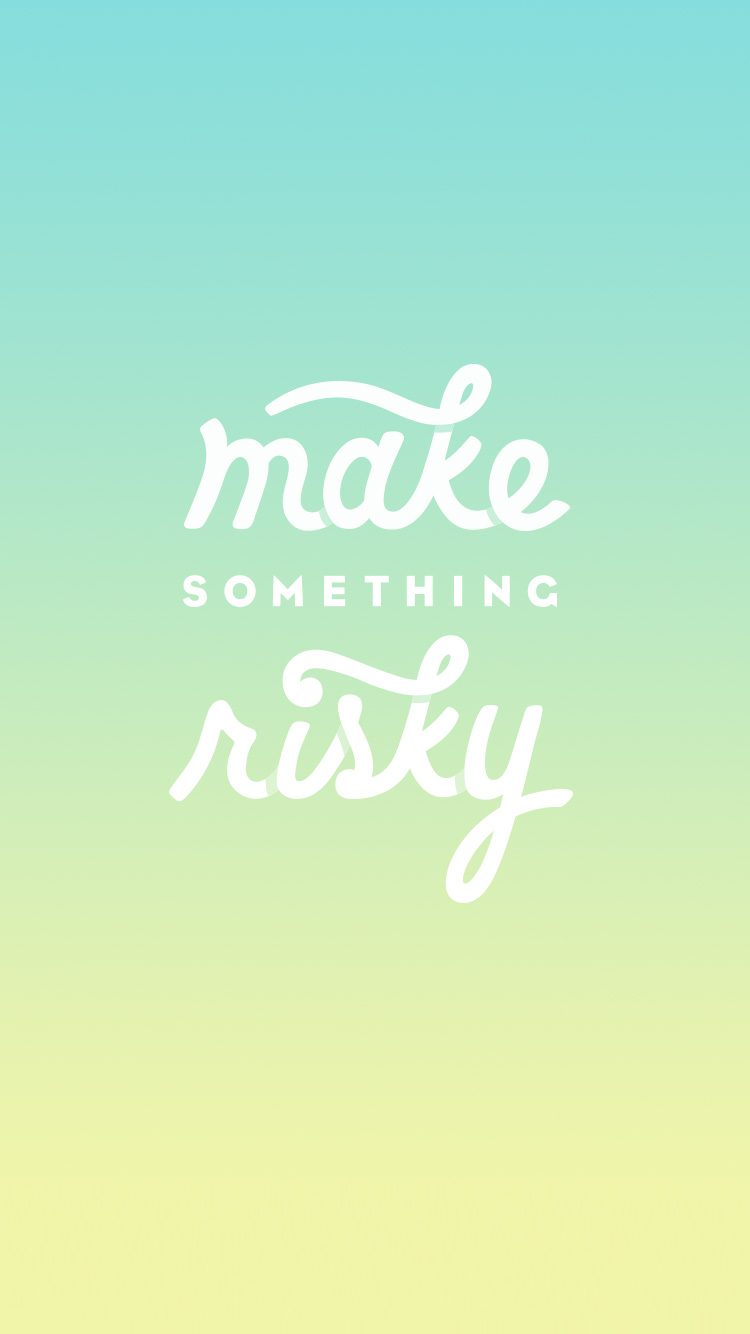 Description: A blue and yellow background with the words make something risky on it's side and a white lettering that reads.