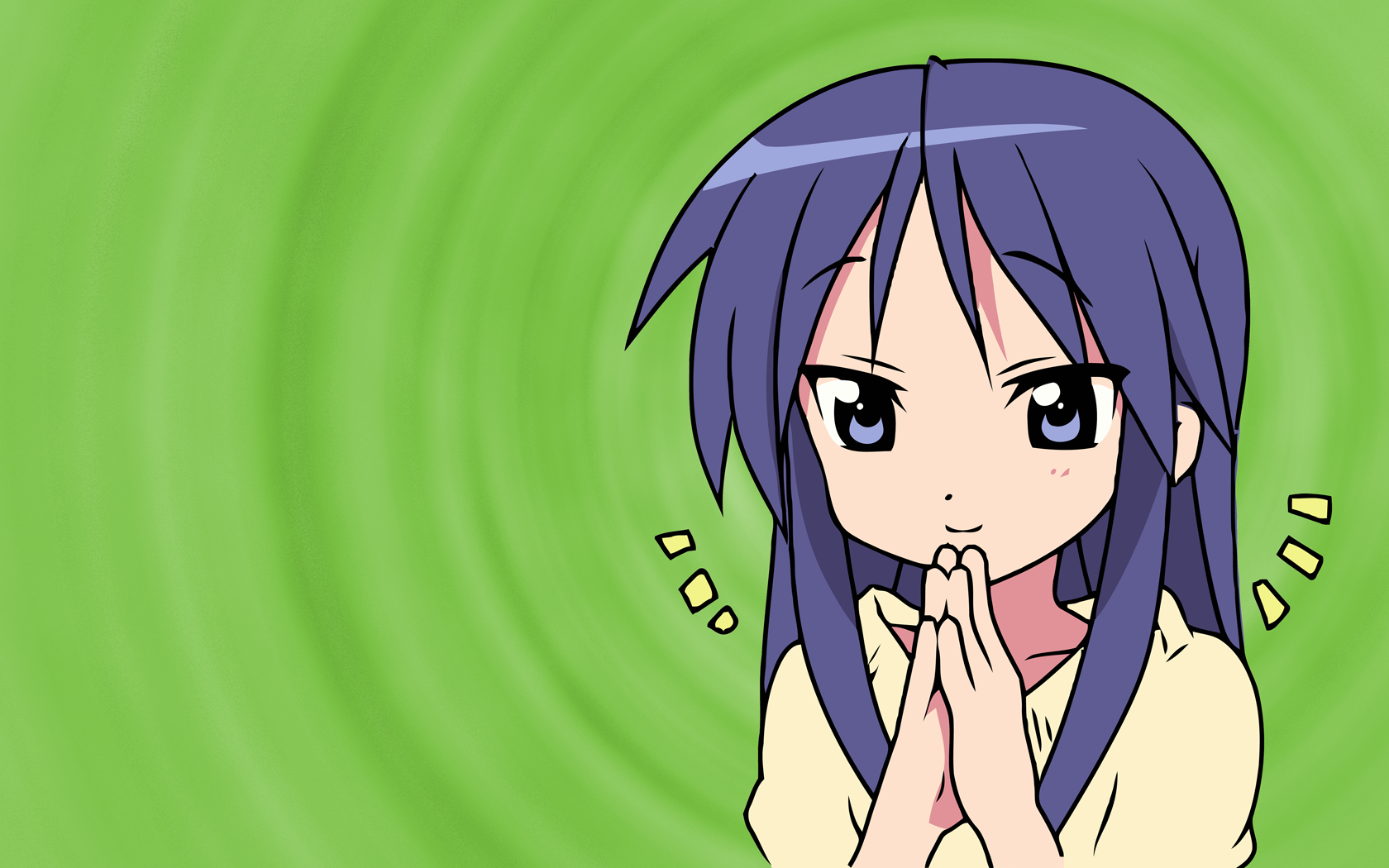 Description: A girl with blue hair and a white shirt is praying with her hands together in front of her face.