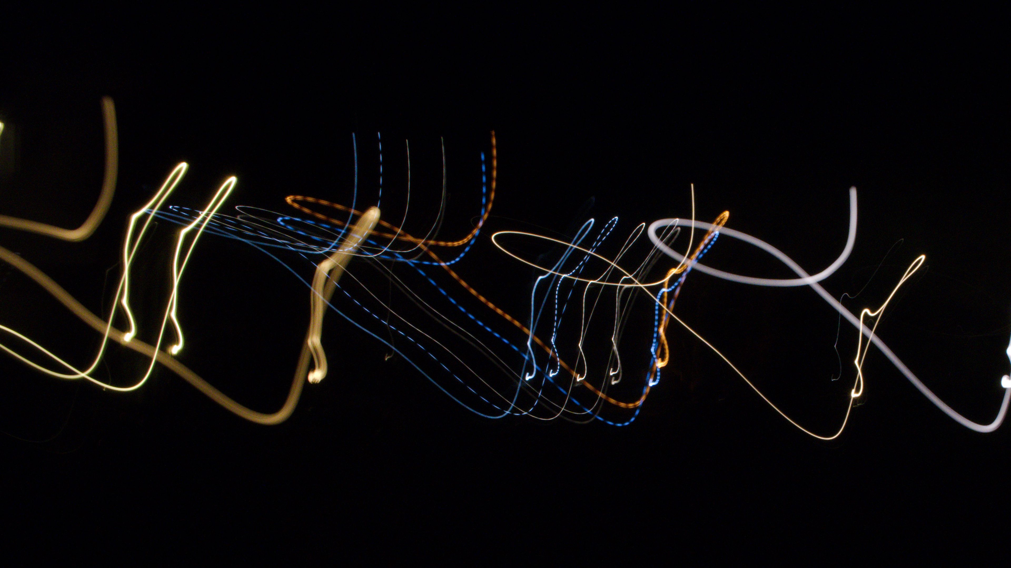 Description: A blurry photo of a black background with a light effect of lines and dots on it.