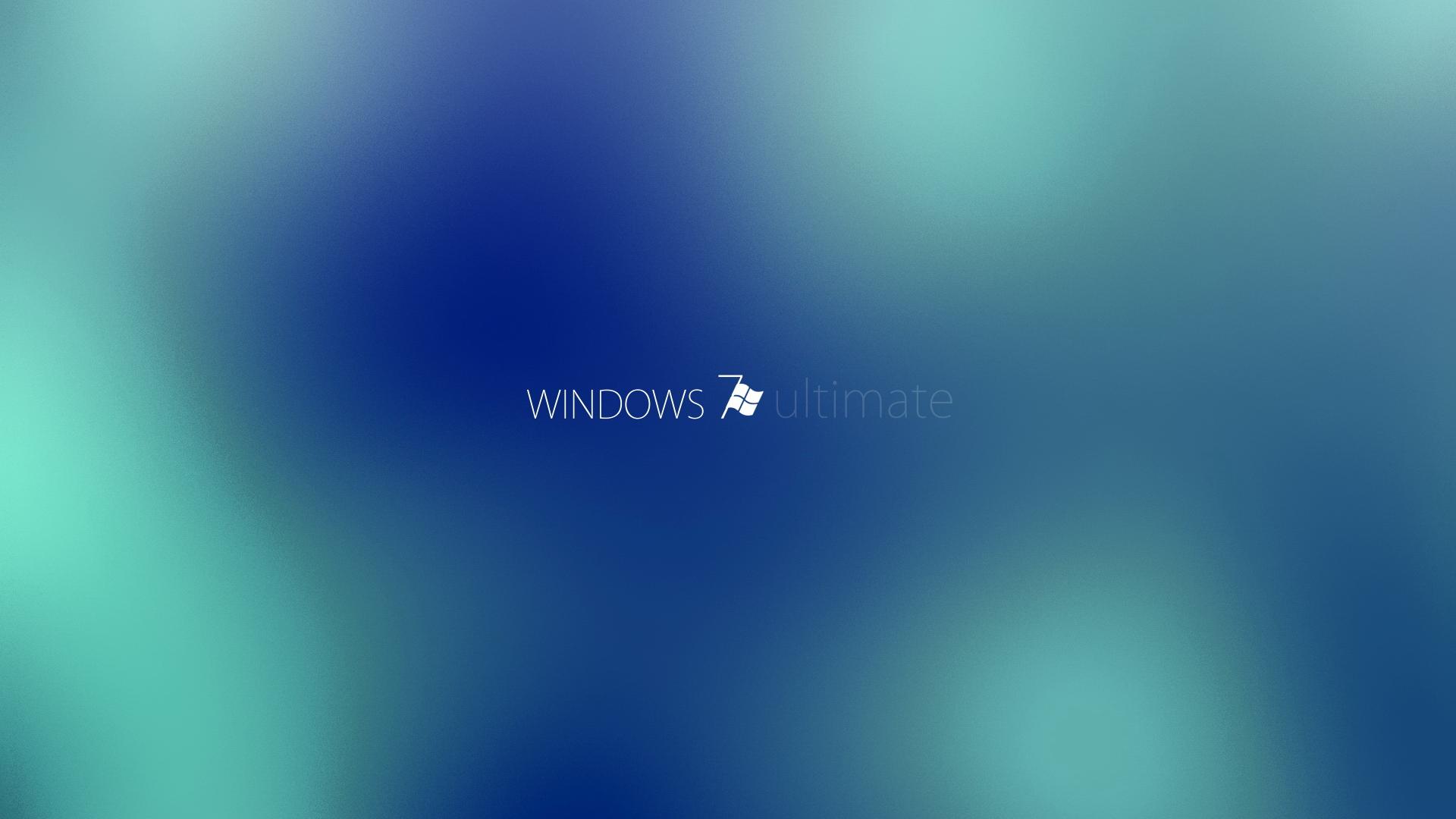 Description: A blurry image of a blue background with windows ultimate logo on it's left side and a white window logo on the right side.