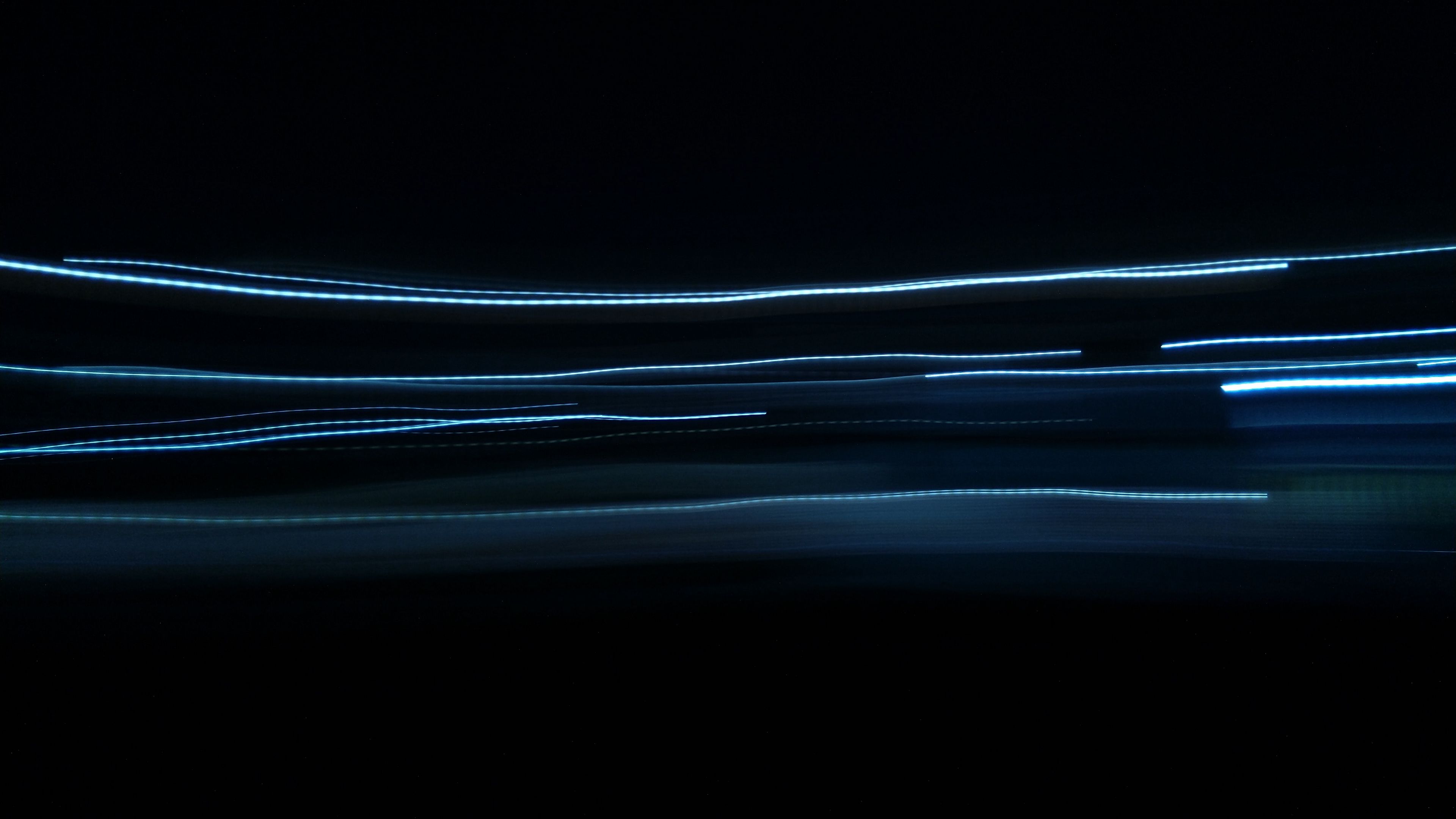 Description: A blurry photo of a street light at night with a blurry background of lights in the dark.