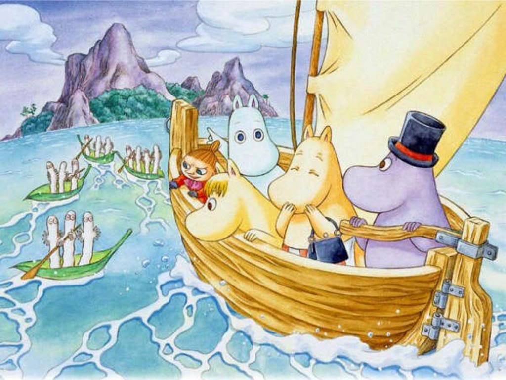 Description: A painting of a boat with animals in it and a man on the front of it in the water.