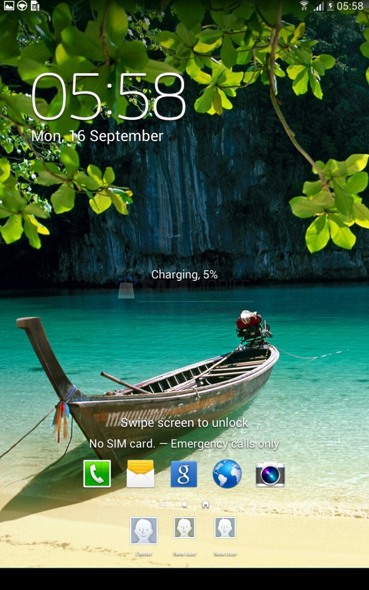 Description: A boat on the beach with a tree in the background and a calendar on the screen of the phone.