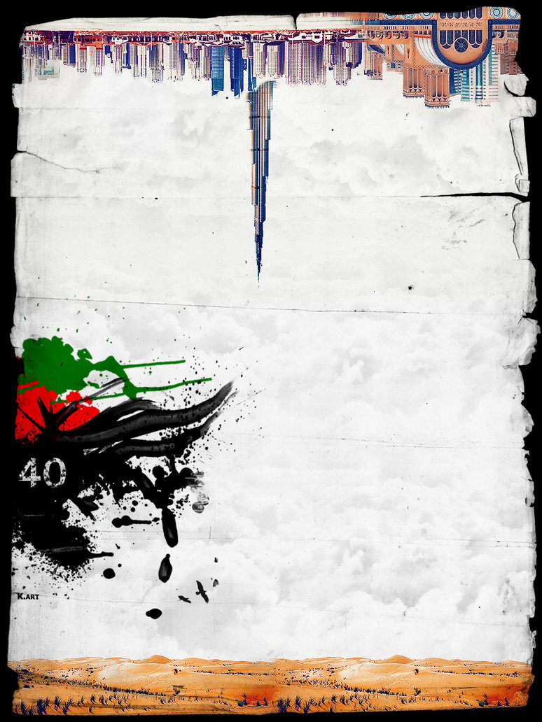 Description: A piece of paper with a painting of a boat on it and a city in the background with a red.