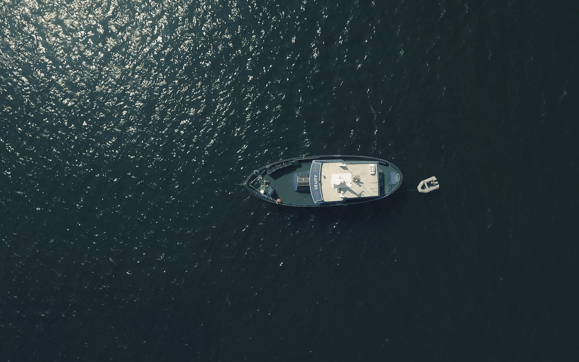 Description: A small boat floating on top of a body of water next to a dock with a clock on it.