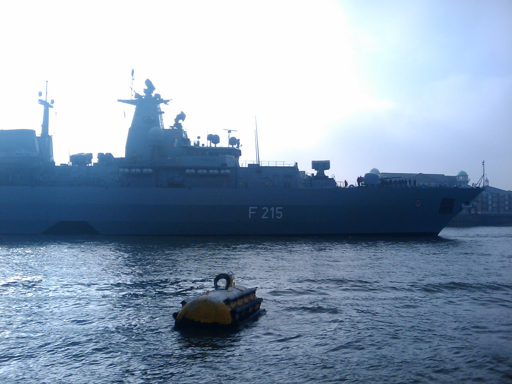 Description: A boat floating in the water next to a large ship in the water with a tug boat in front of it.