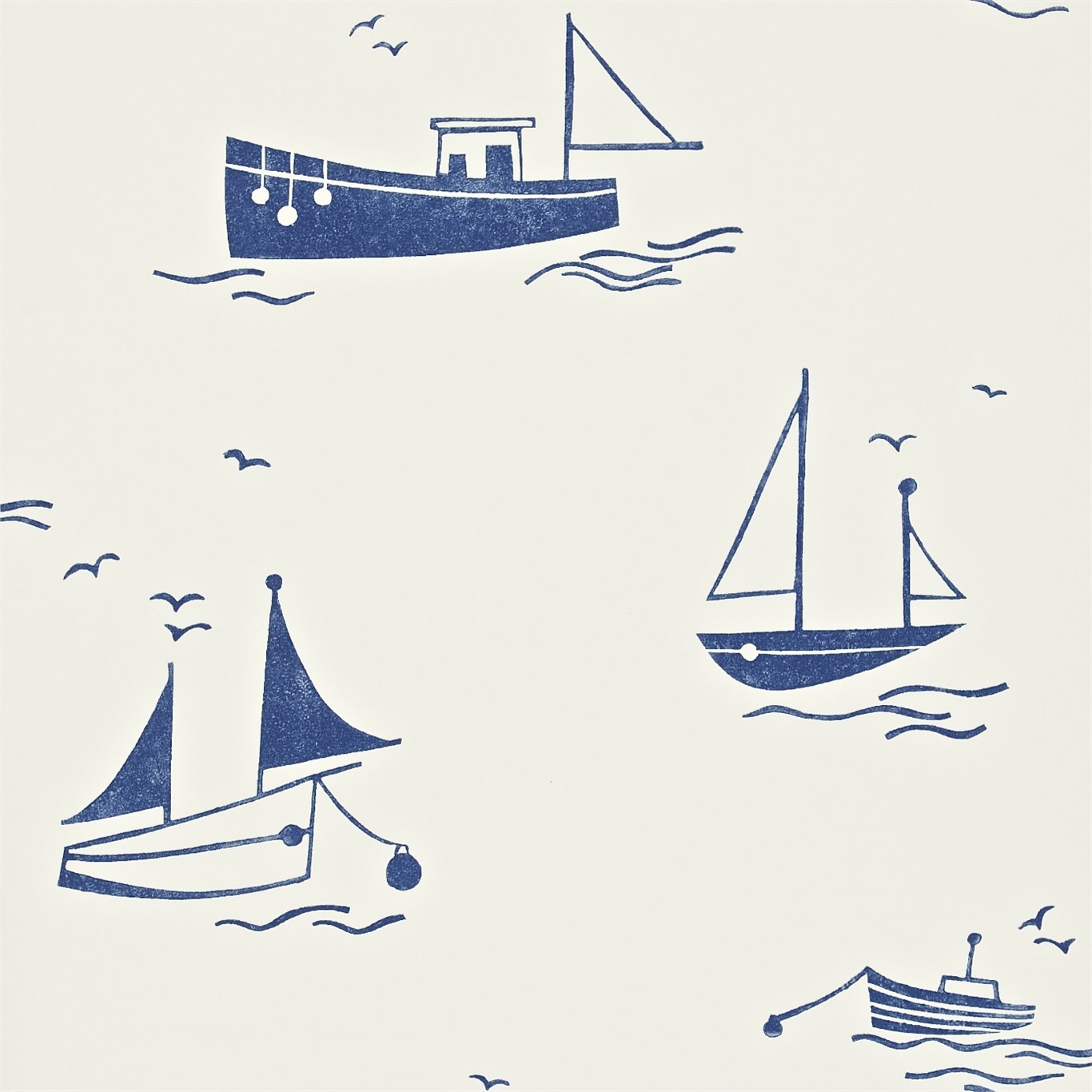Description: A wallpaper with a boat and a boat on it's side and birds flying around it in the sky.