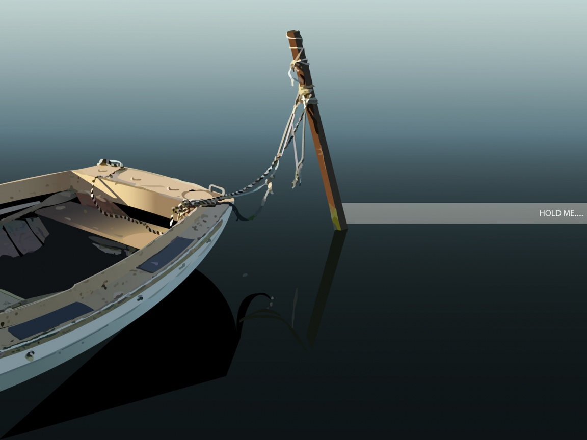 Description: A boat tied to a pole on a body of water with a pole sticking out of it's side.