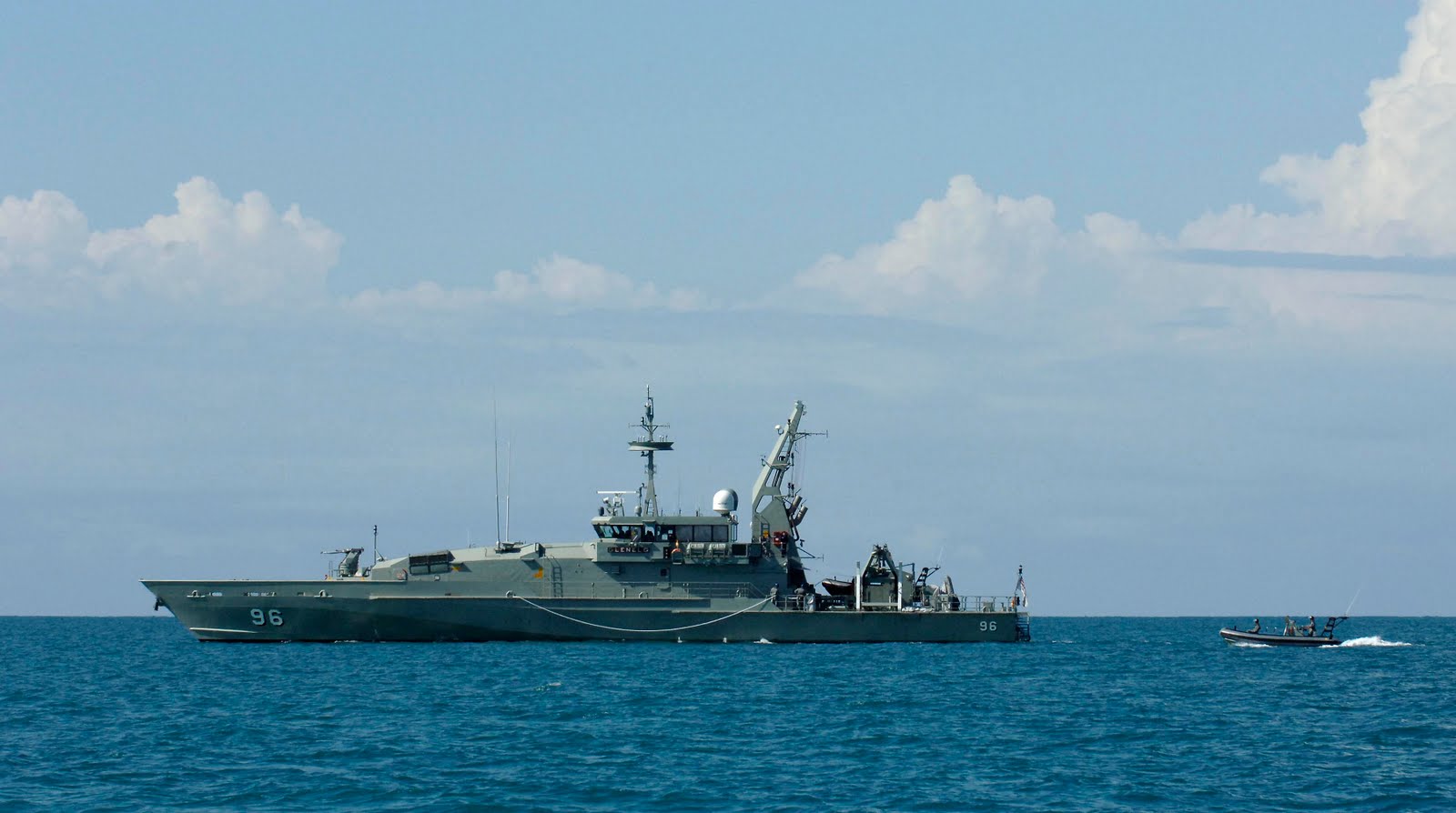 Description: A boat in the water with a boat in the background and a boat in the foreground with a boat in the water.