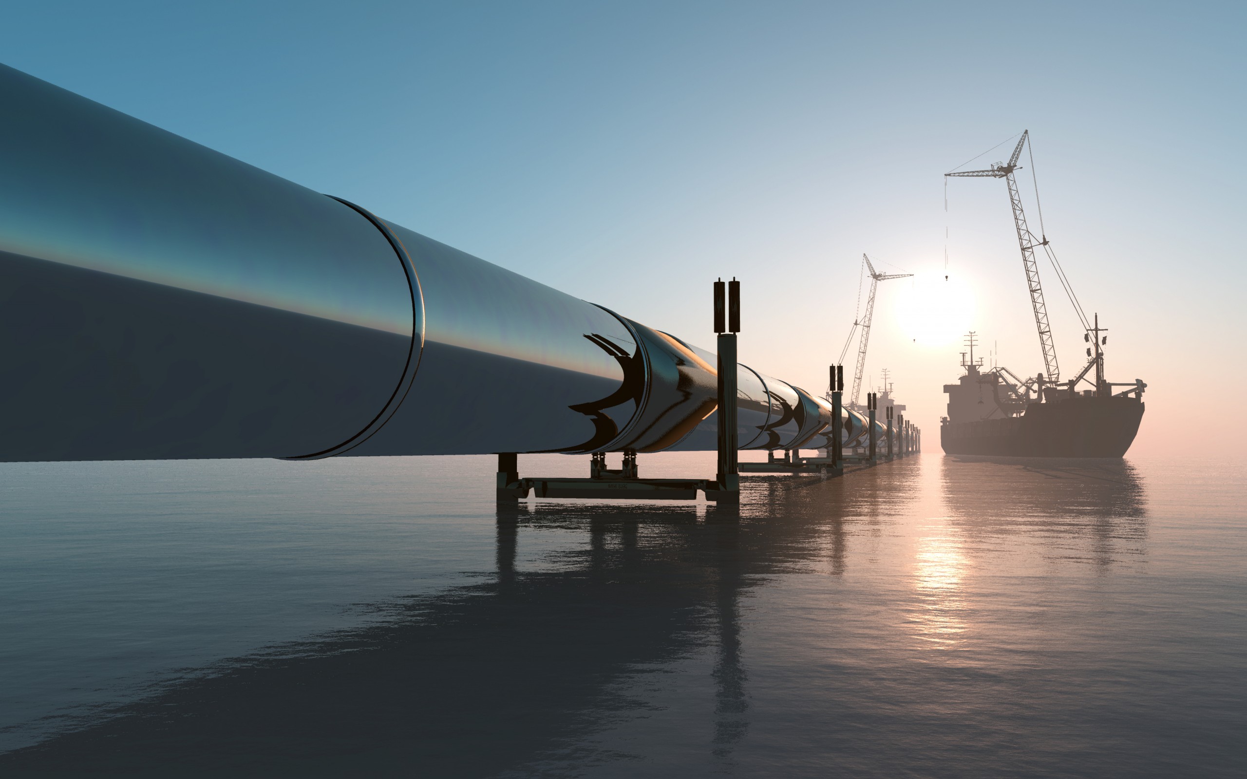 Description: A row of boats sitting on top of a body of water next to a dock with a crane in the background.