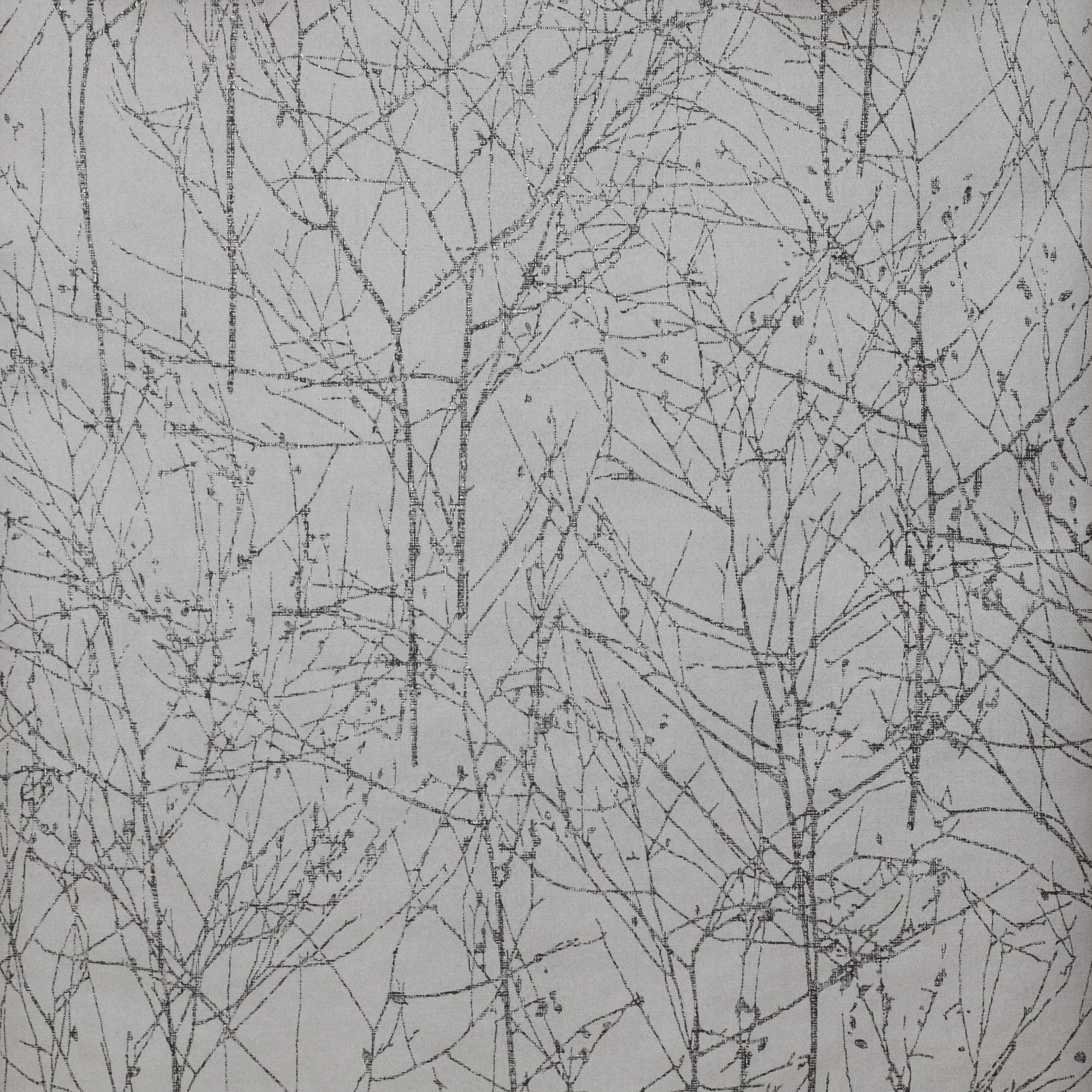 Description: A drawing of branches with small leaves on them in a white background with a black border around the branches.
