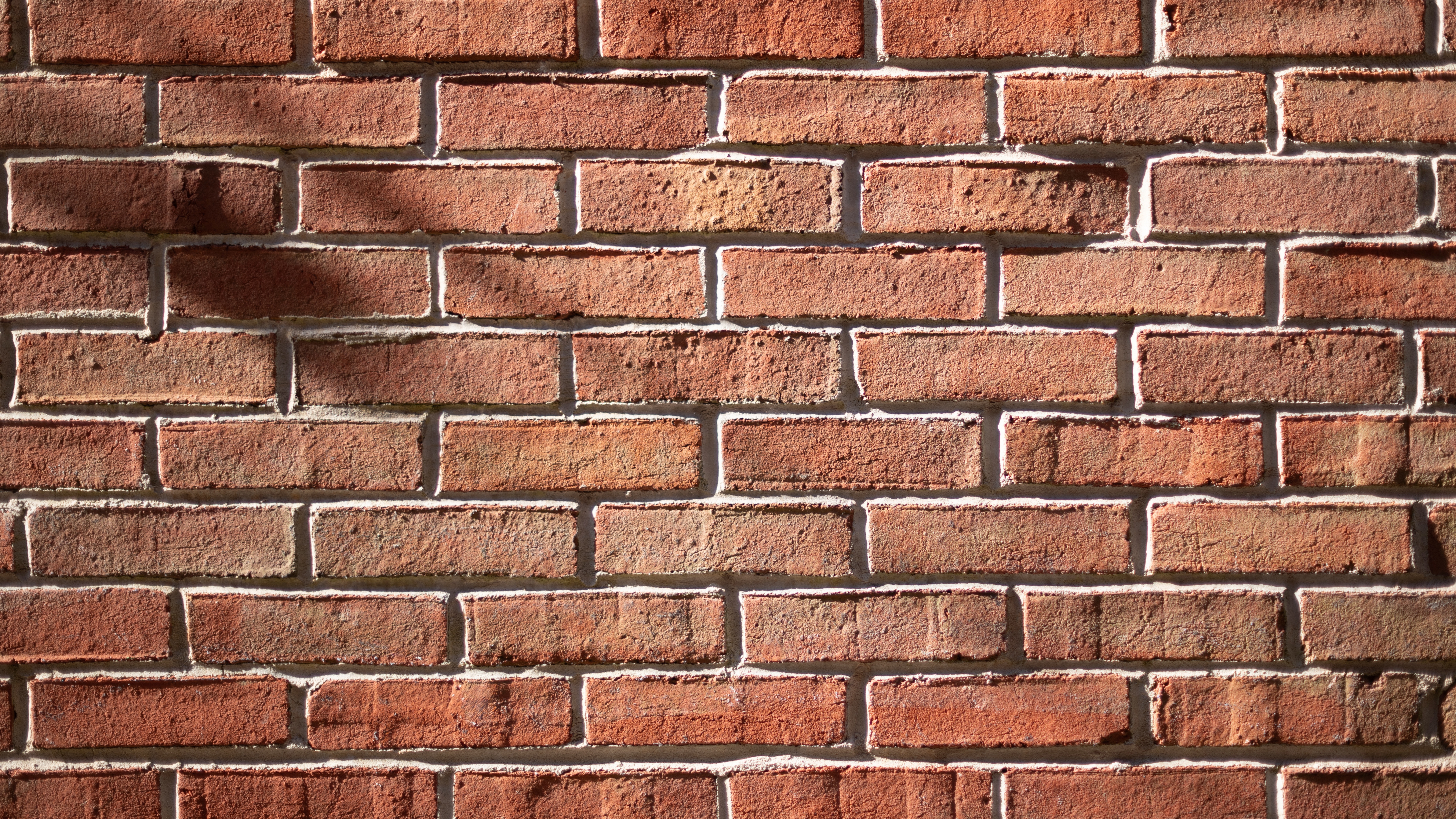 Description: A brick wall with a clock on it's side and a shadow of a person on the wall.
