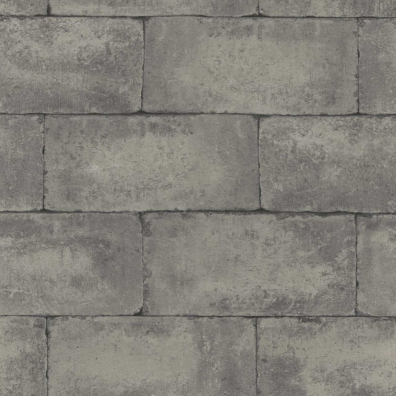 Description: A brick wall with a gray color and a white background that is very similar to the wallpaper in the house.
