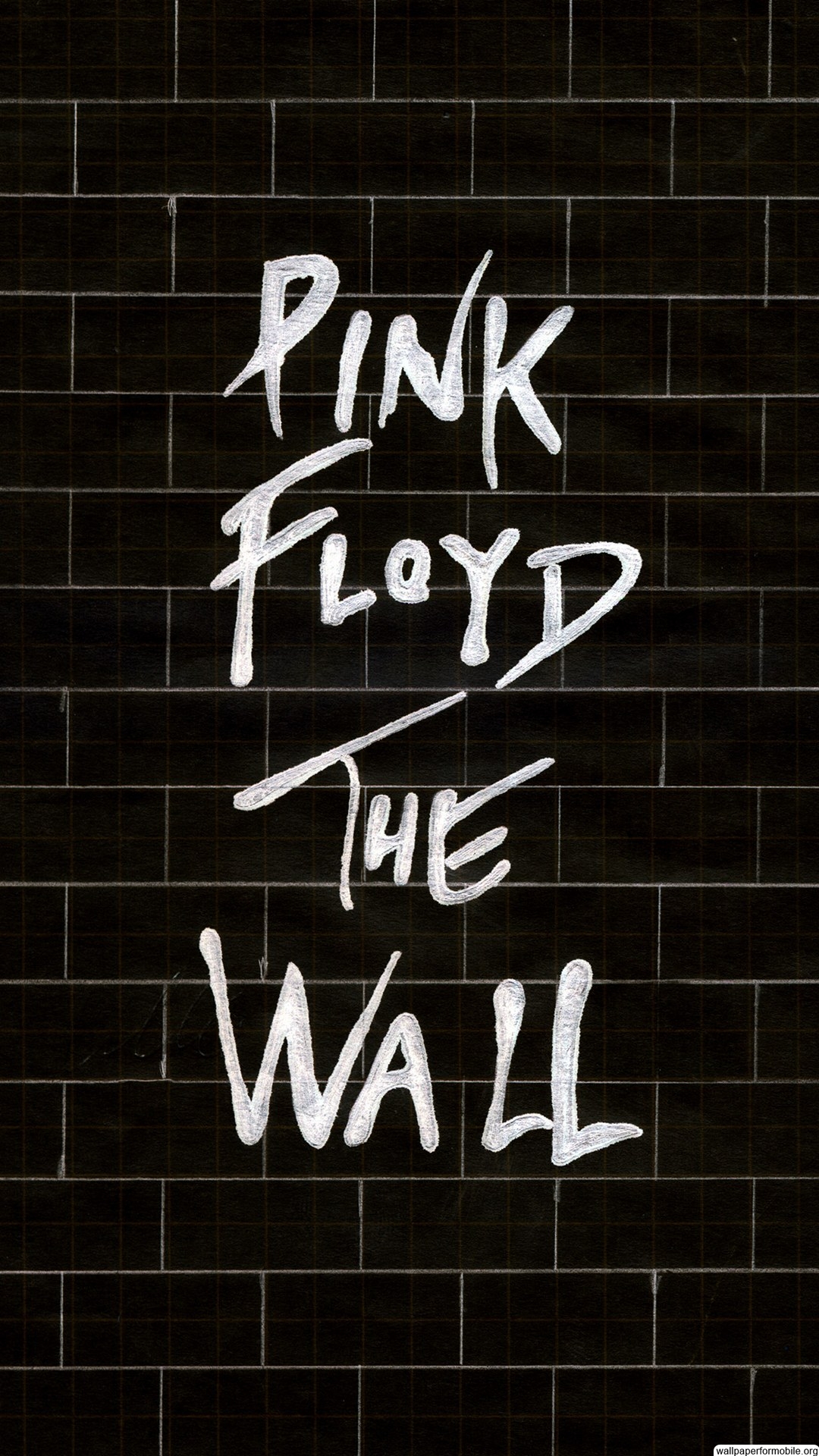 Description: A brick wall with a white spray painted on it that says pink floyd the wall on it and the words pink floyd the wall written in white spray paint.