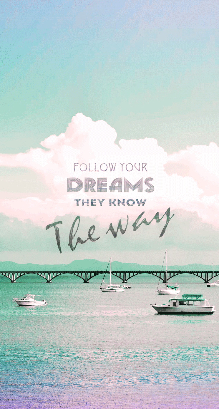 Description: A picture of a bridge and some boats in the water with a quote below it that reads follow your dreams they know the way.