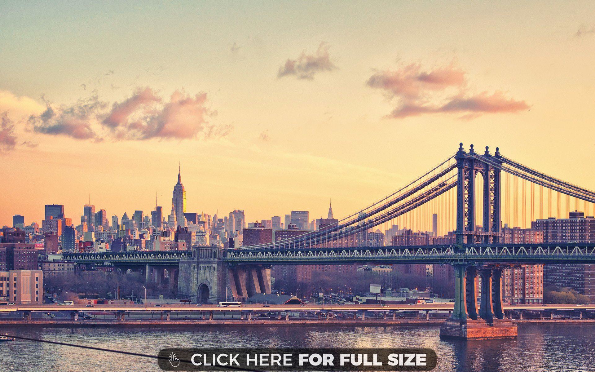 Description: A bridge with a city in the background and a sign that says click here for full size information on it.