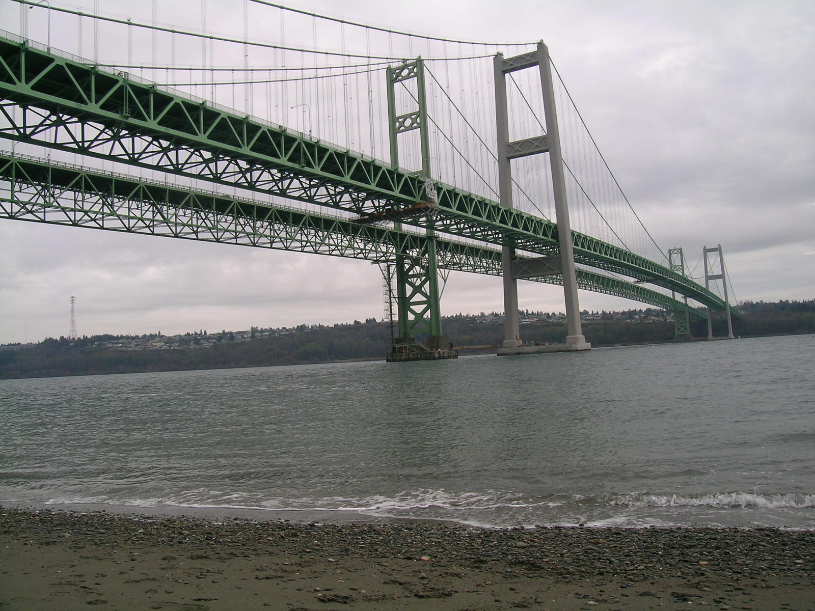 Description: A bridge over a body of water with a boat in the water below it and a boat in the water below it.