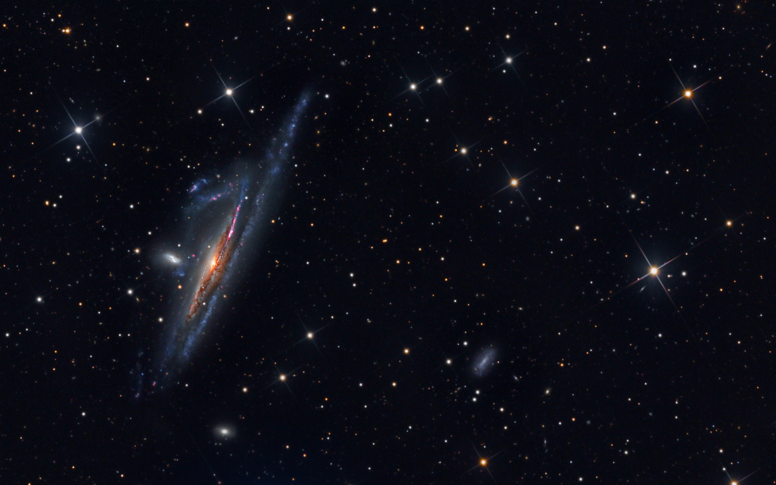 Description: A very large and very bright looking object in the sky with stars around it and a bright blue disk.