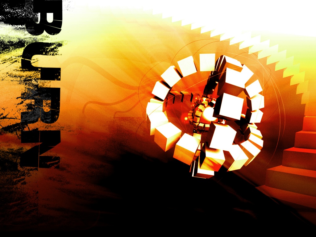 Description: A picture of a bright orange and yellow background with a clock on it's side and the words burn on it.