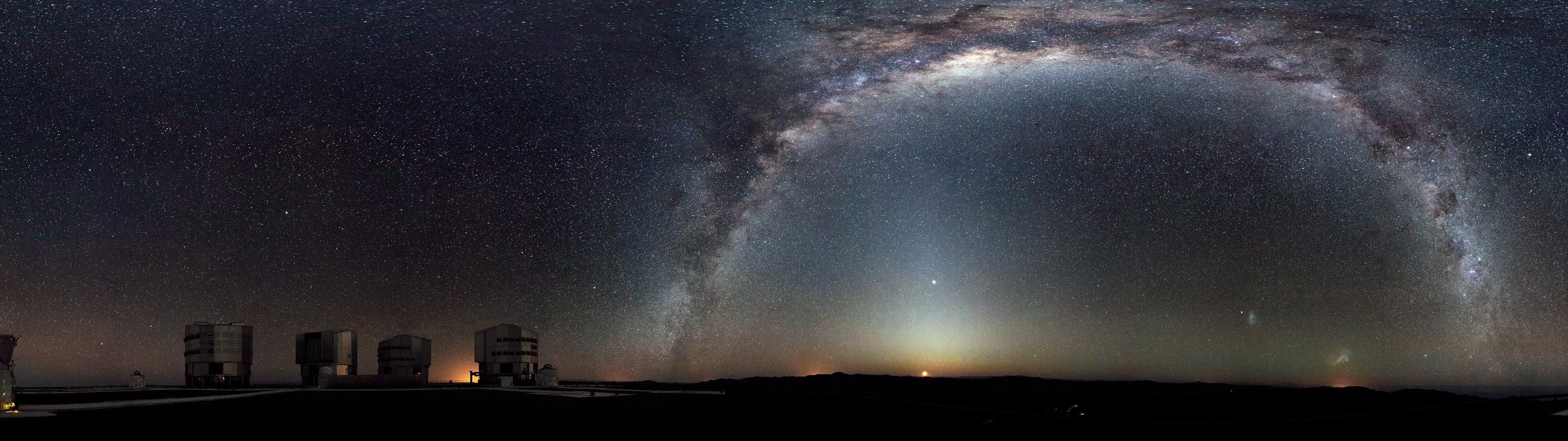 Description: A very large and very bright star filled sky with a lot of stars in the sky above it and a few buildings.