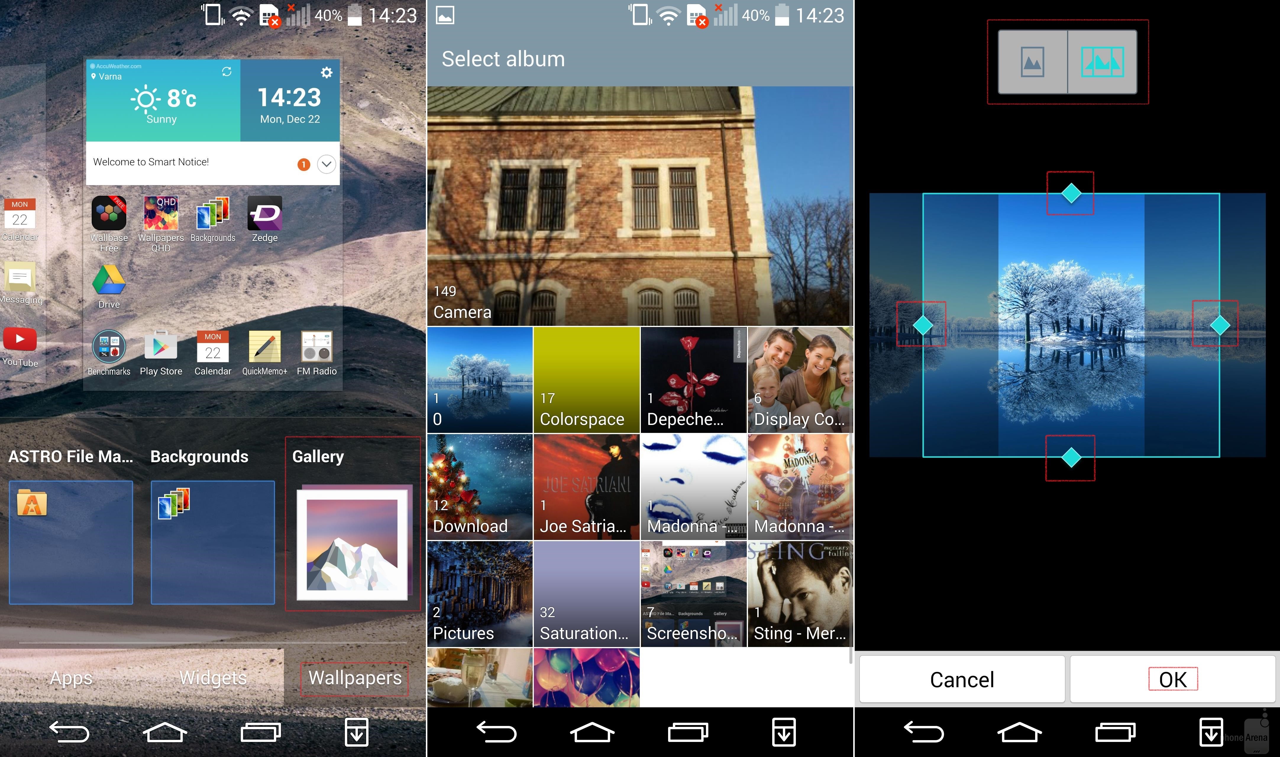 Description: A picture of a building and a picture of a building and a window with a clock on it and a window with a picture of a building.