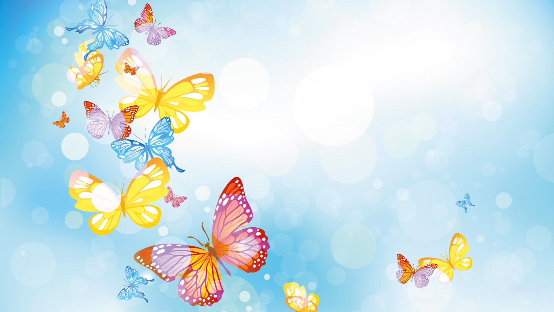 Description: A group of butterflies flying in the sky with bubbles and bubbles in the background.