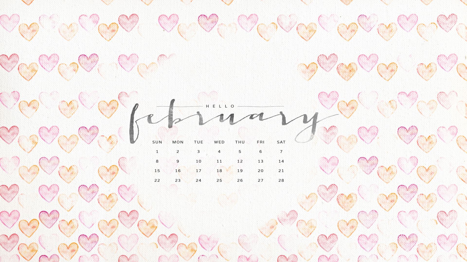 Description: A calendar with hearts on it and the words february written in cursive writing on it.