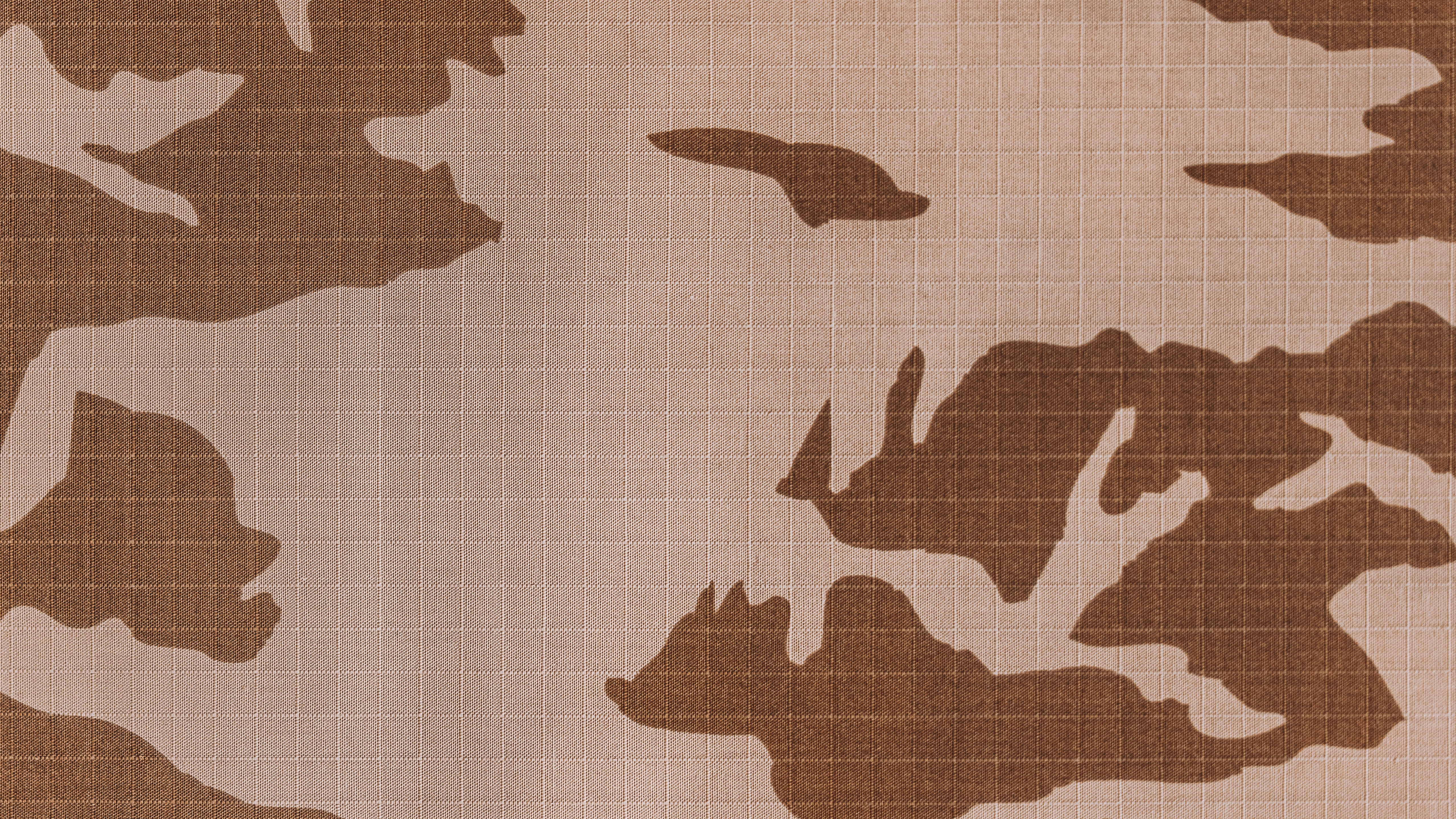 Description: A brown and white camouflage pattern with a dog and a bird on it's back side and a bird on the other side of the pattern.
