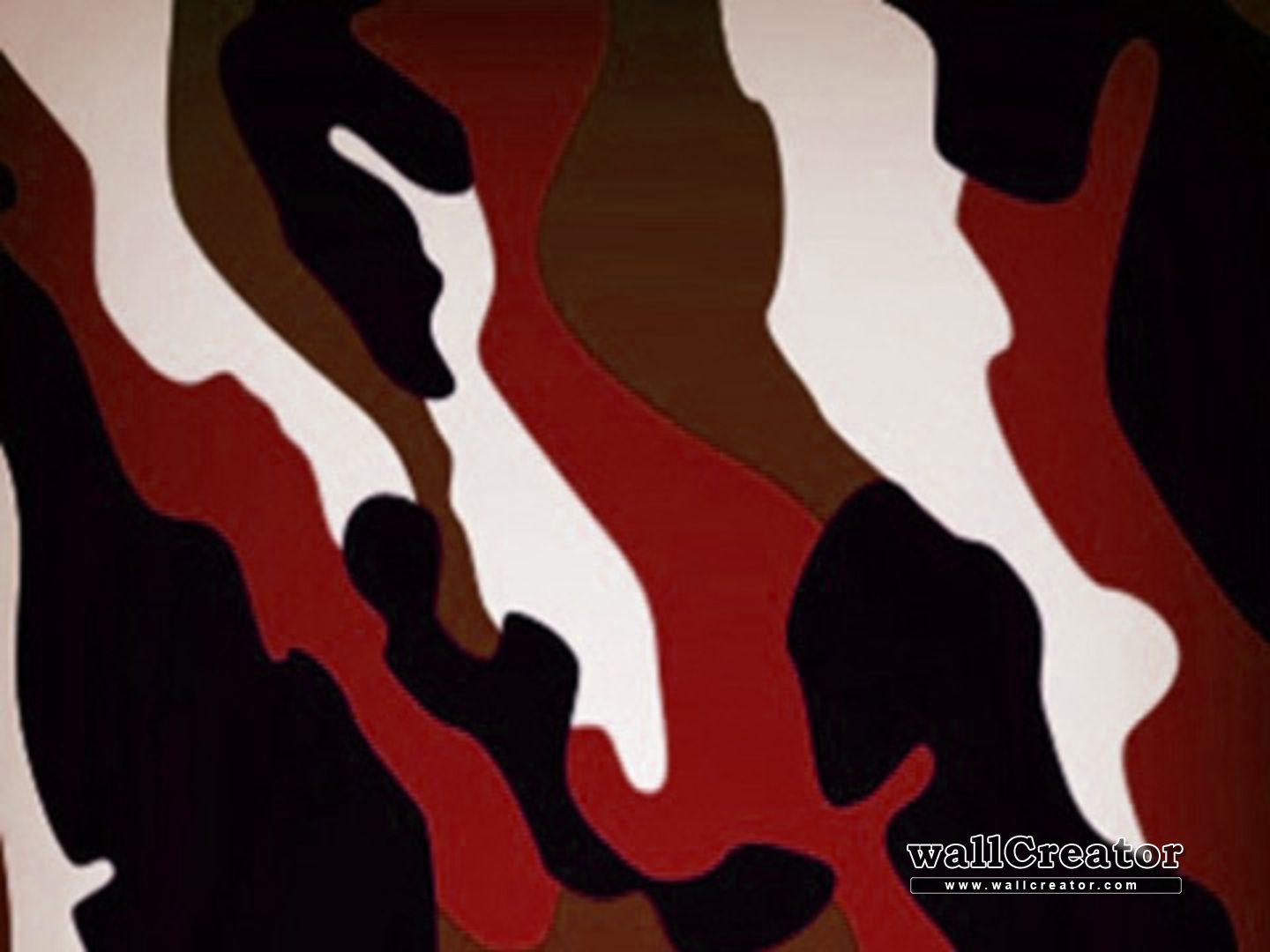 Description: A picture of a camouflage pattern with red and white stripes on it's side and a black and white stripe on the bottom.