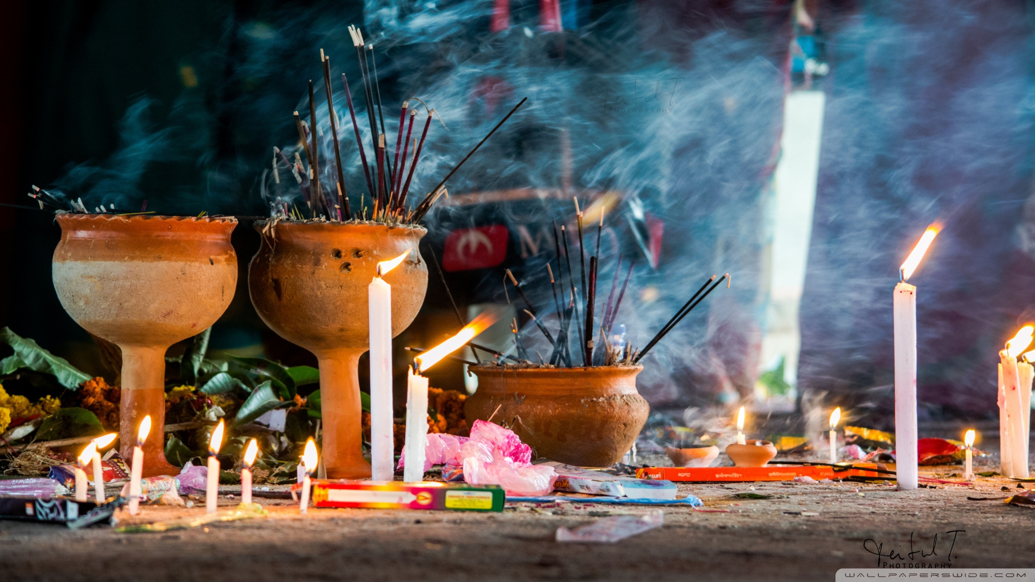 Description: A table topped with candles and vases filled with flowers and candles next to each other on top of a table.