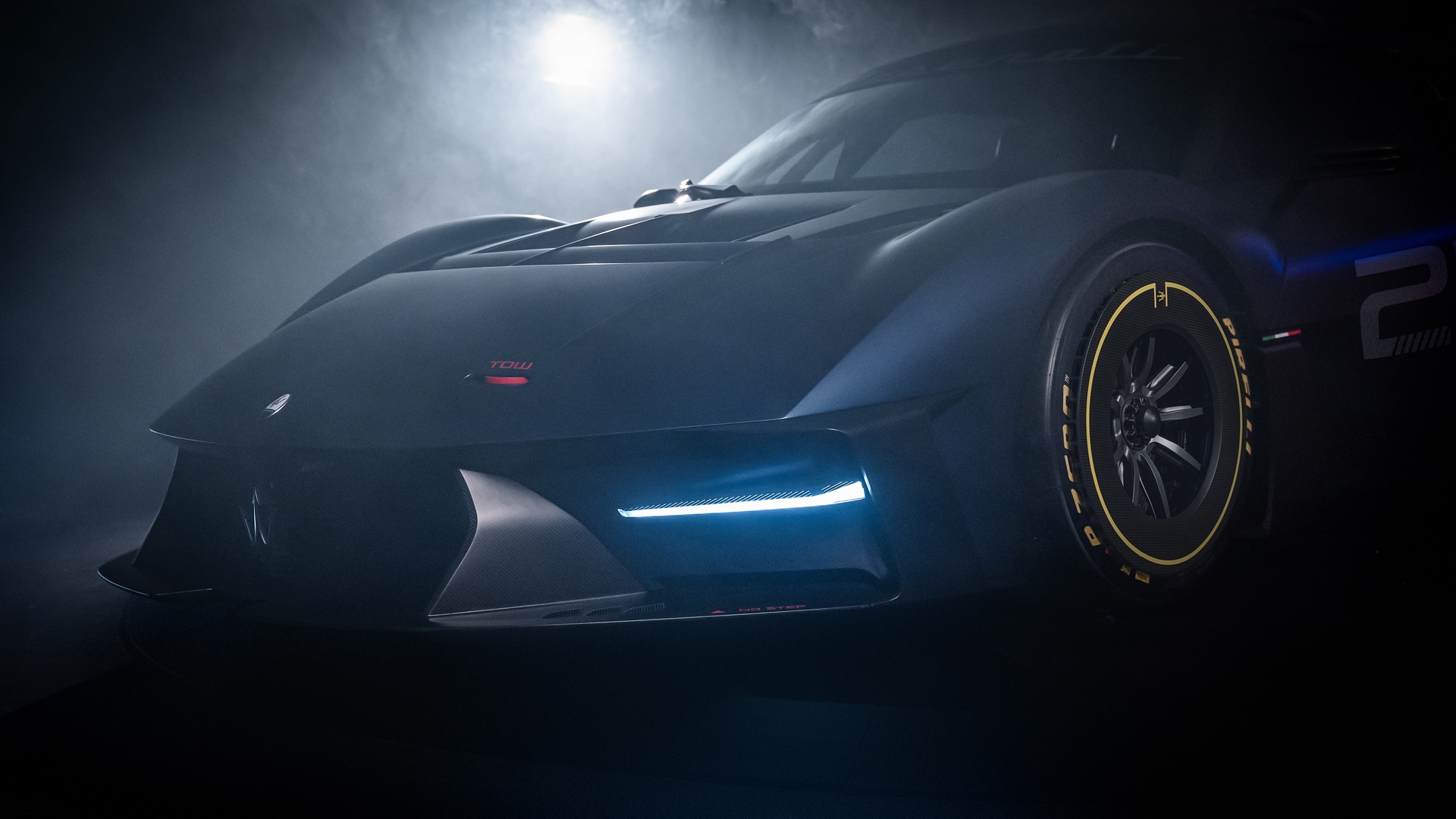Description: A car with a bright light on it's side in the dark room with fog and light from the headlights.