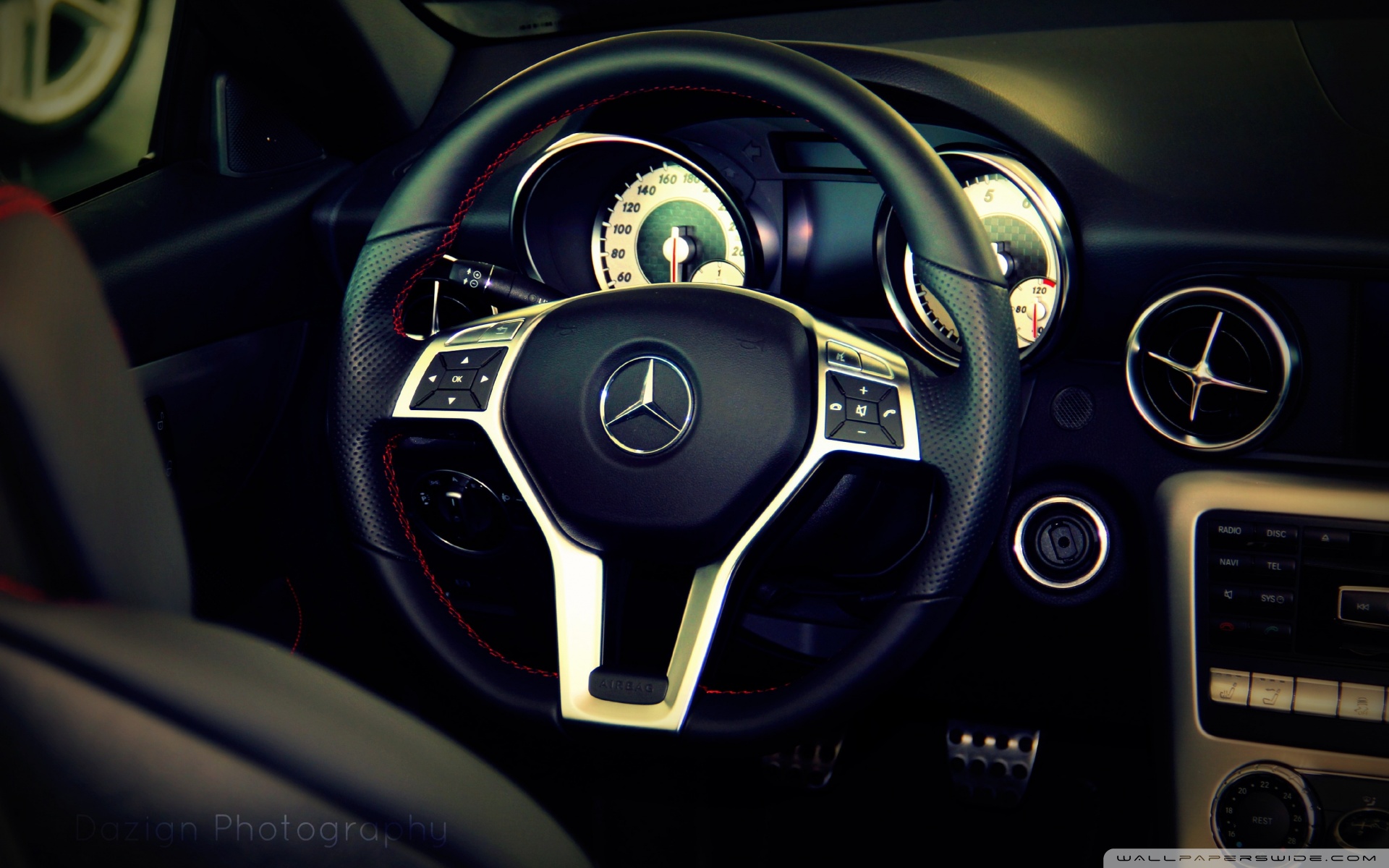 Description: A car dashboard with a steering wheel and a dash board with a digital display on the dash board and a digital display on the dash.