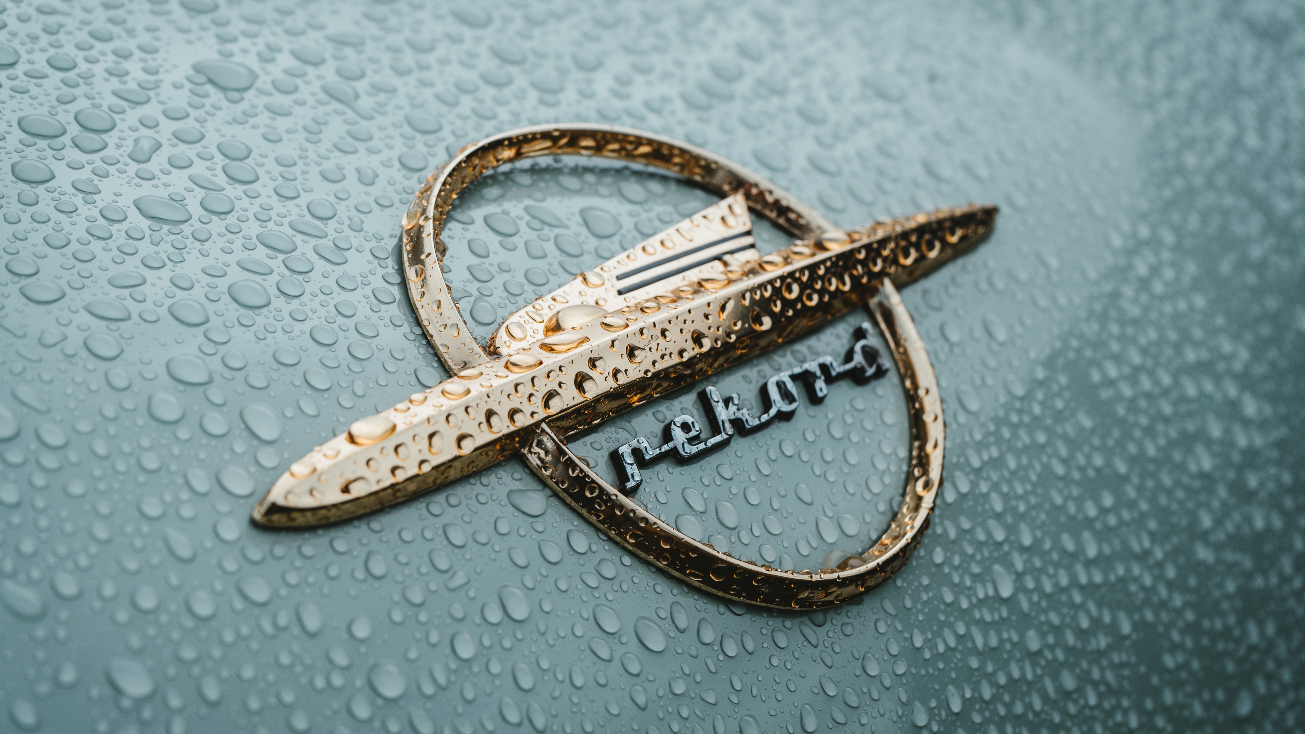 Description: A close up of a car emblem on a car with rain drops on it's windshield and the word relax written on it.