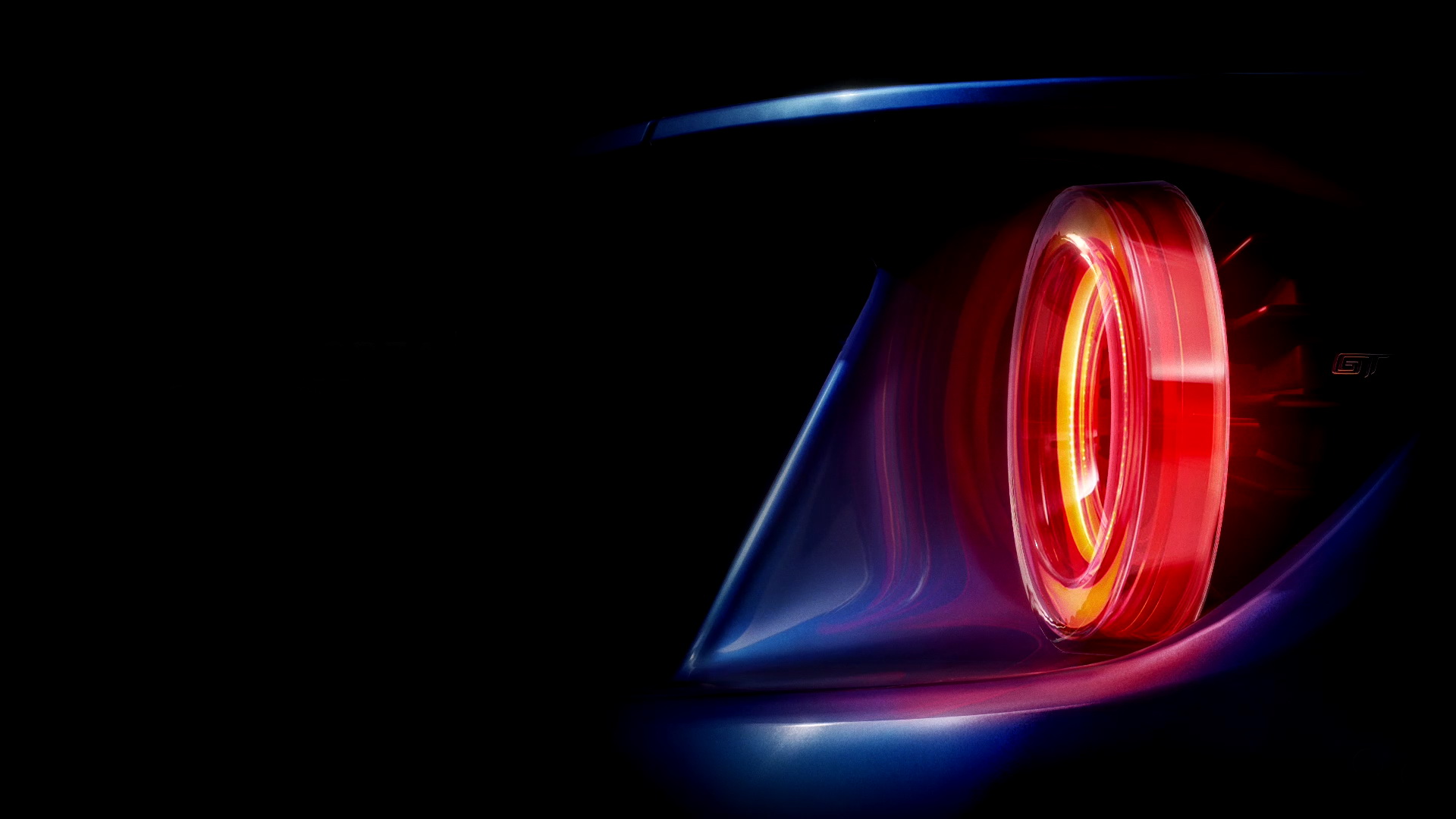 Description: A car tail light with a red light on it's side in the dark with a black background.