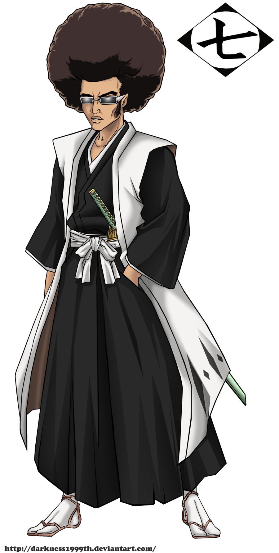 Description: A cartoon character with an afro and a black dress and white shoes.