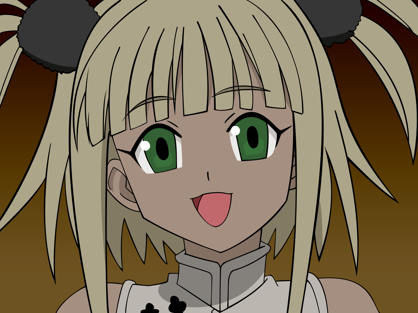 Description: A cartoon character with a cat ears and a white shirt and green eyes and a black nose and ears.