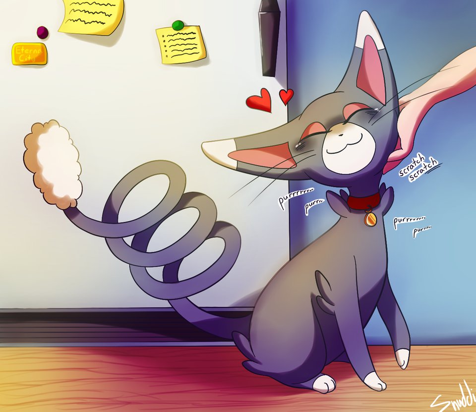 Description: A cartoon cat sitting on the floor with a magnet on the wall behind it and a note attached to the wall.