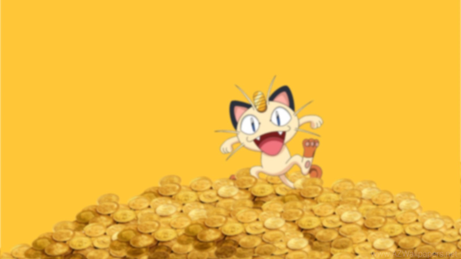 Description: A cartoon cat is sitting on top of a pile of gold coins with a hammer in it's mouth.