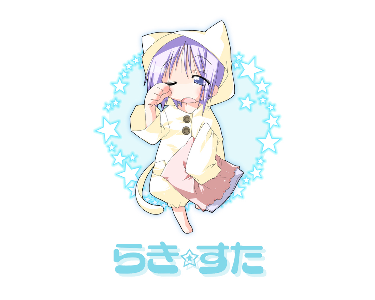 Description: A cartoon character with a cat on her back and stars around her neck.