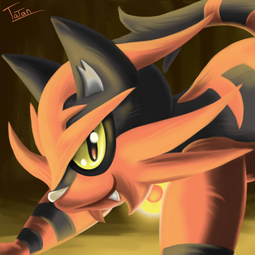 Description: A cartoon picture of a cat with a sword in its hand and a fire in the background with a caption that reads.