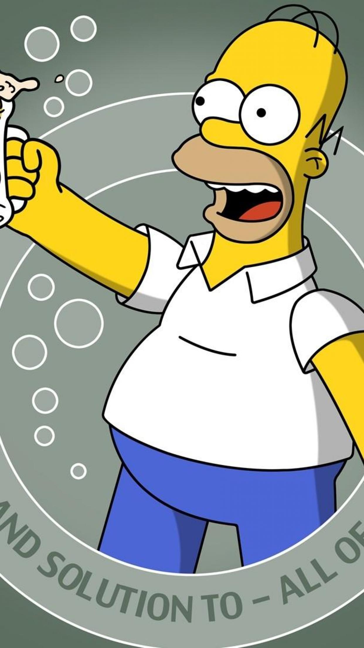 Description: A cartoon character holding a glass of beer and a bottle of beer in his hand with the words end solution to all of them.