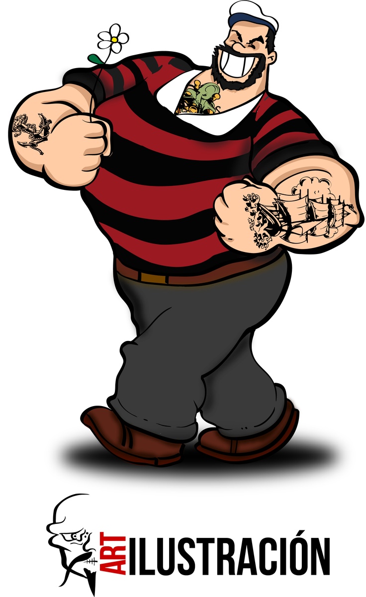 Description: A cartoon character with a big belly and a striped shirt on.