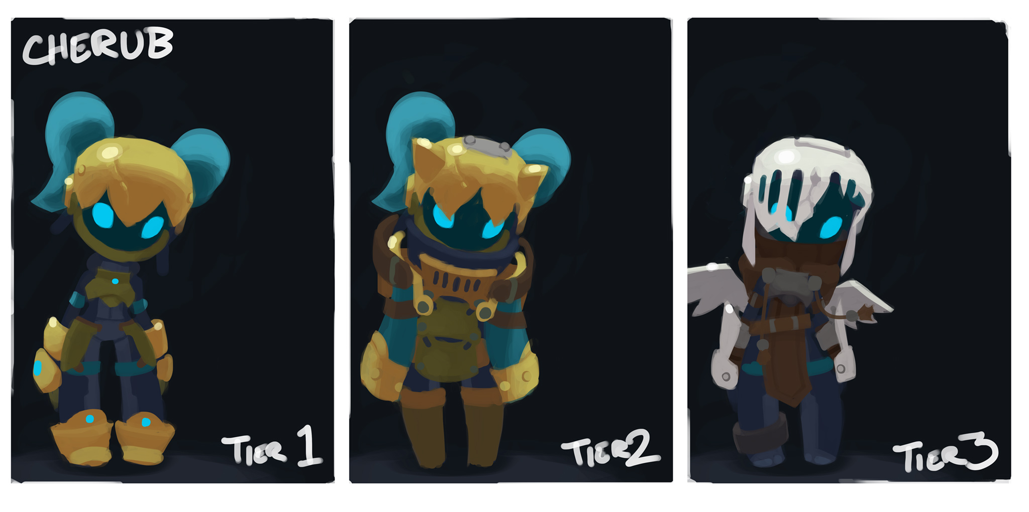 Description: Three different images of a cartoon character with blue eyes and a yellow outfit.