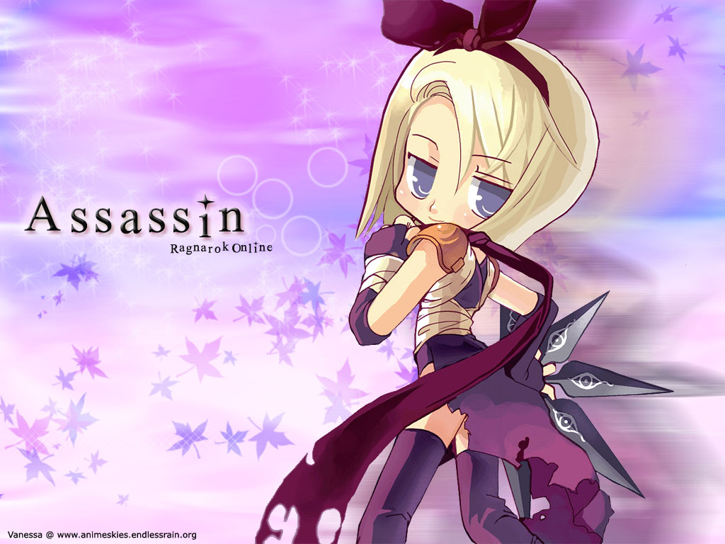 Description: A cartoon character with a bow on her head and a purple background with stars and a nameless character.